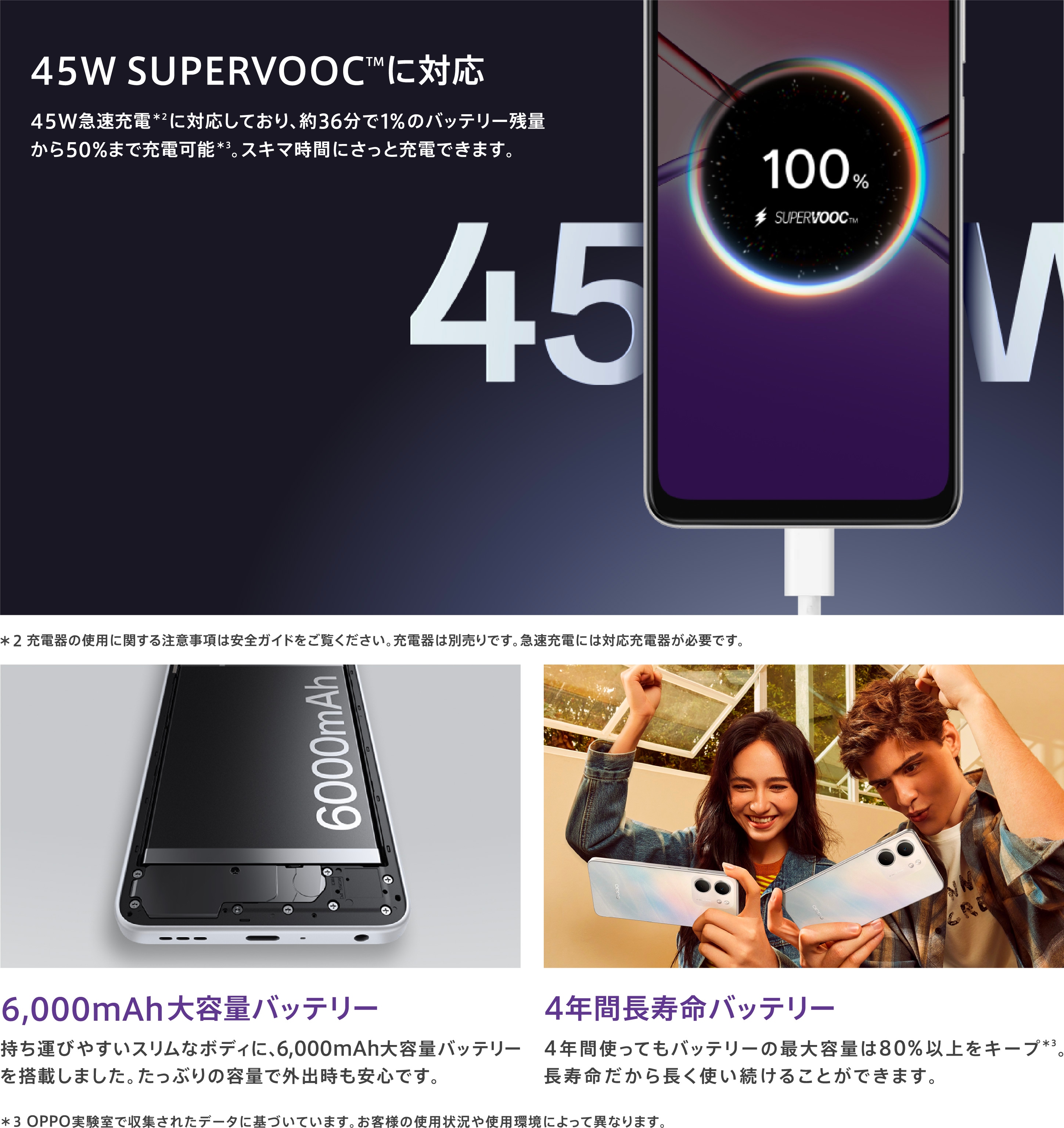 | 急速充電 | 45W SUPERVOOC™フラッシュチャージ / 33W PPS |