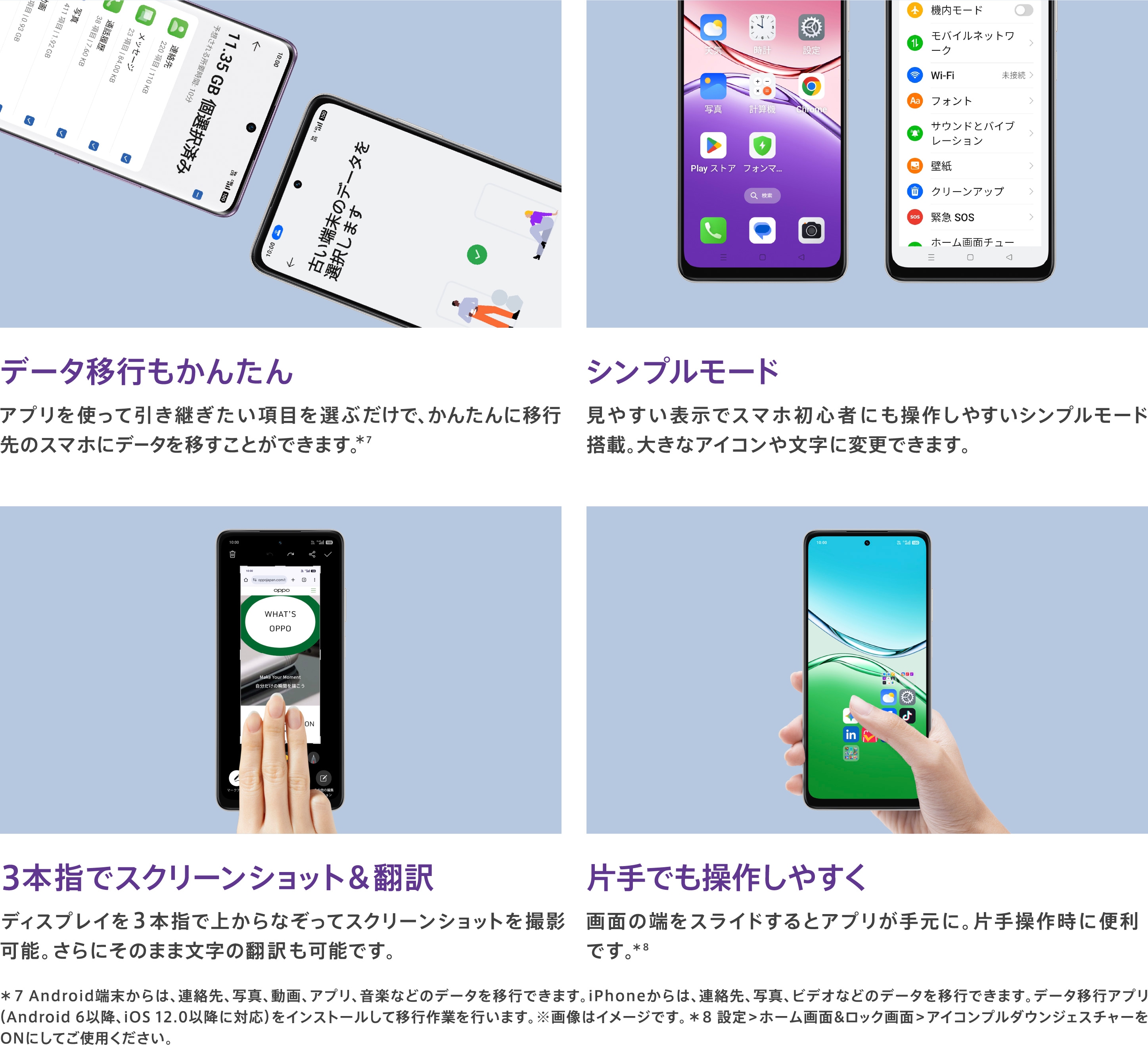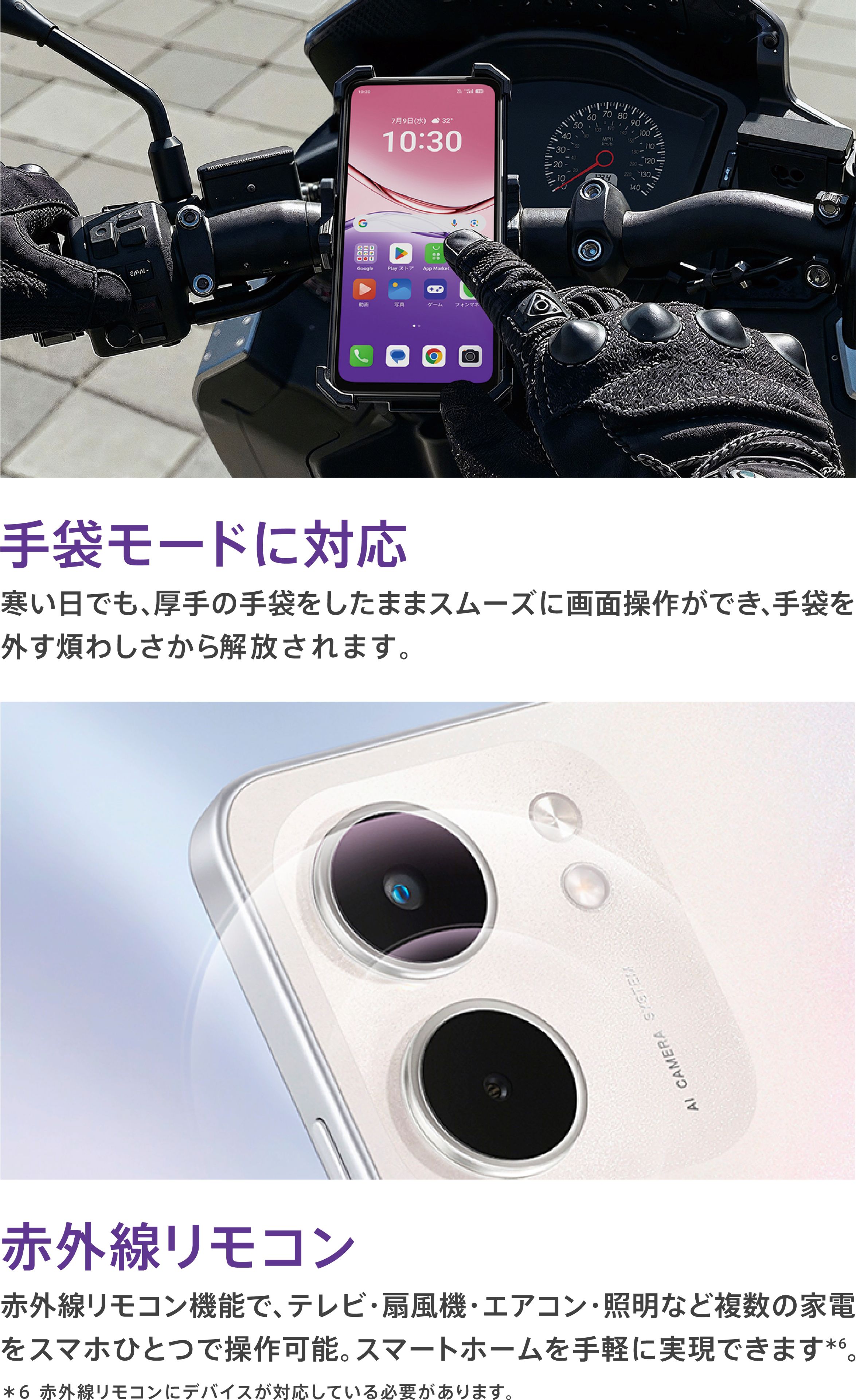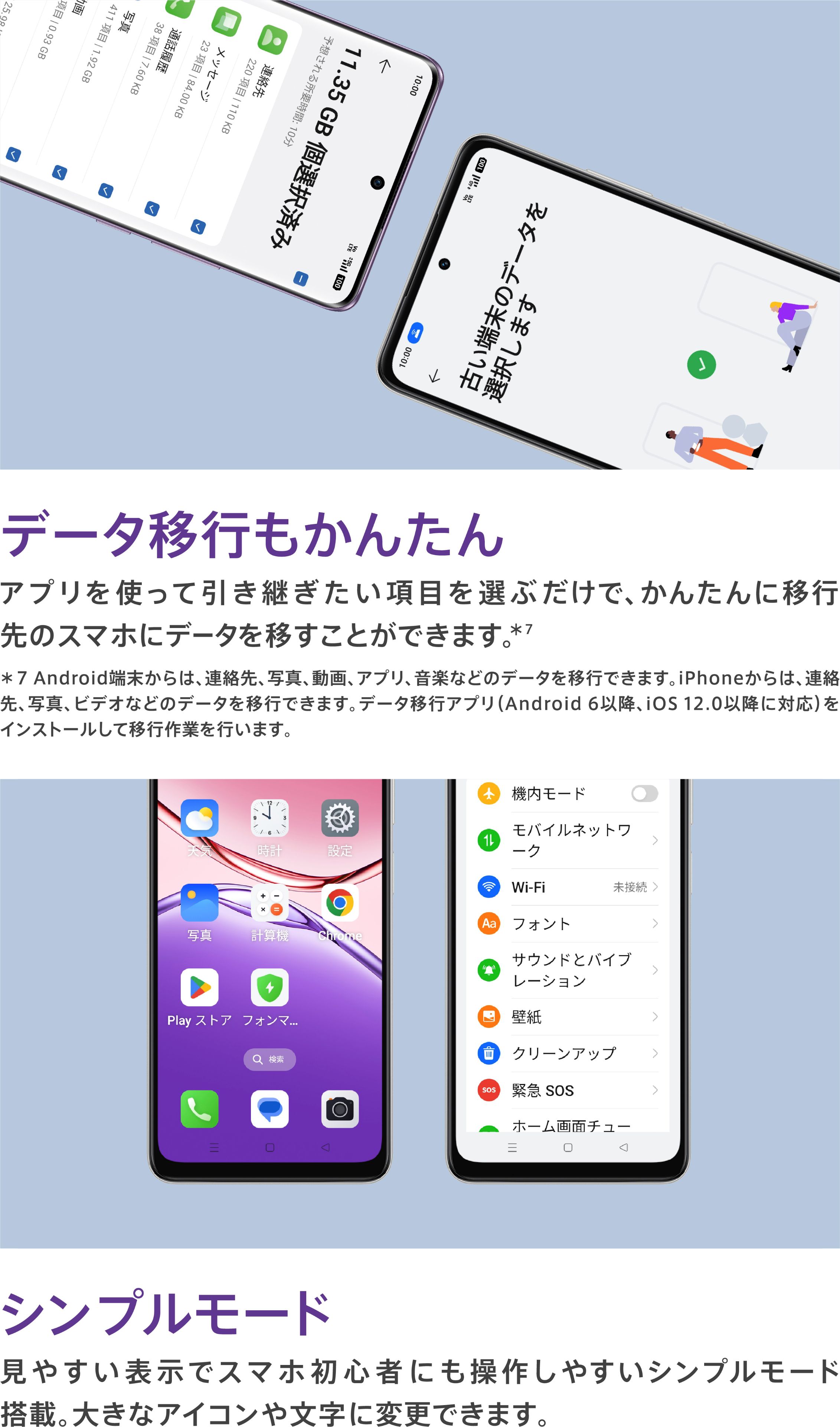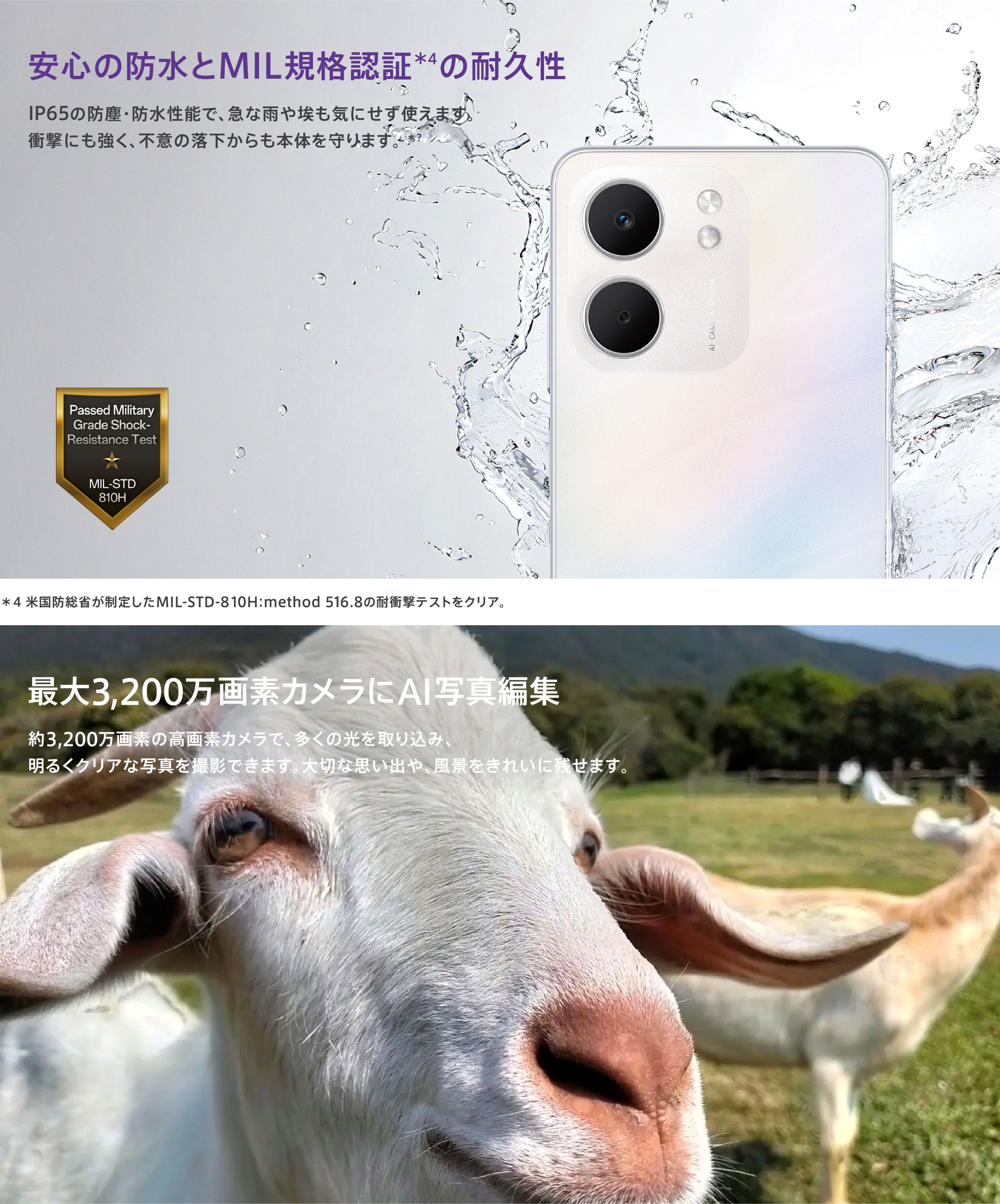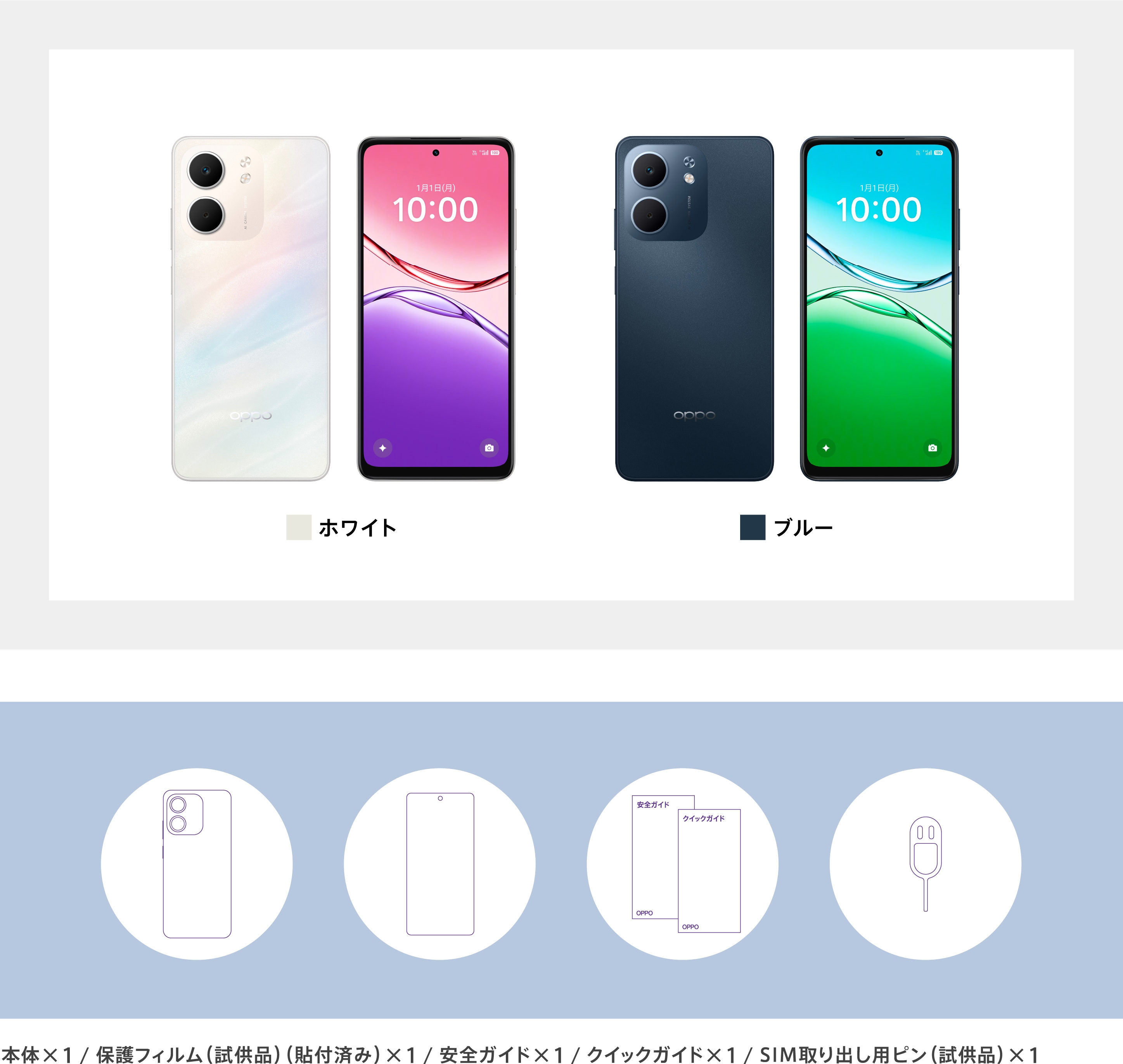 | 本体付属品 | 保護フィルム(試供品)(貼付済み)/ SIM取出し用ピン(試供品) / クイックガイド / 安全ガイド |
