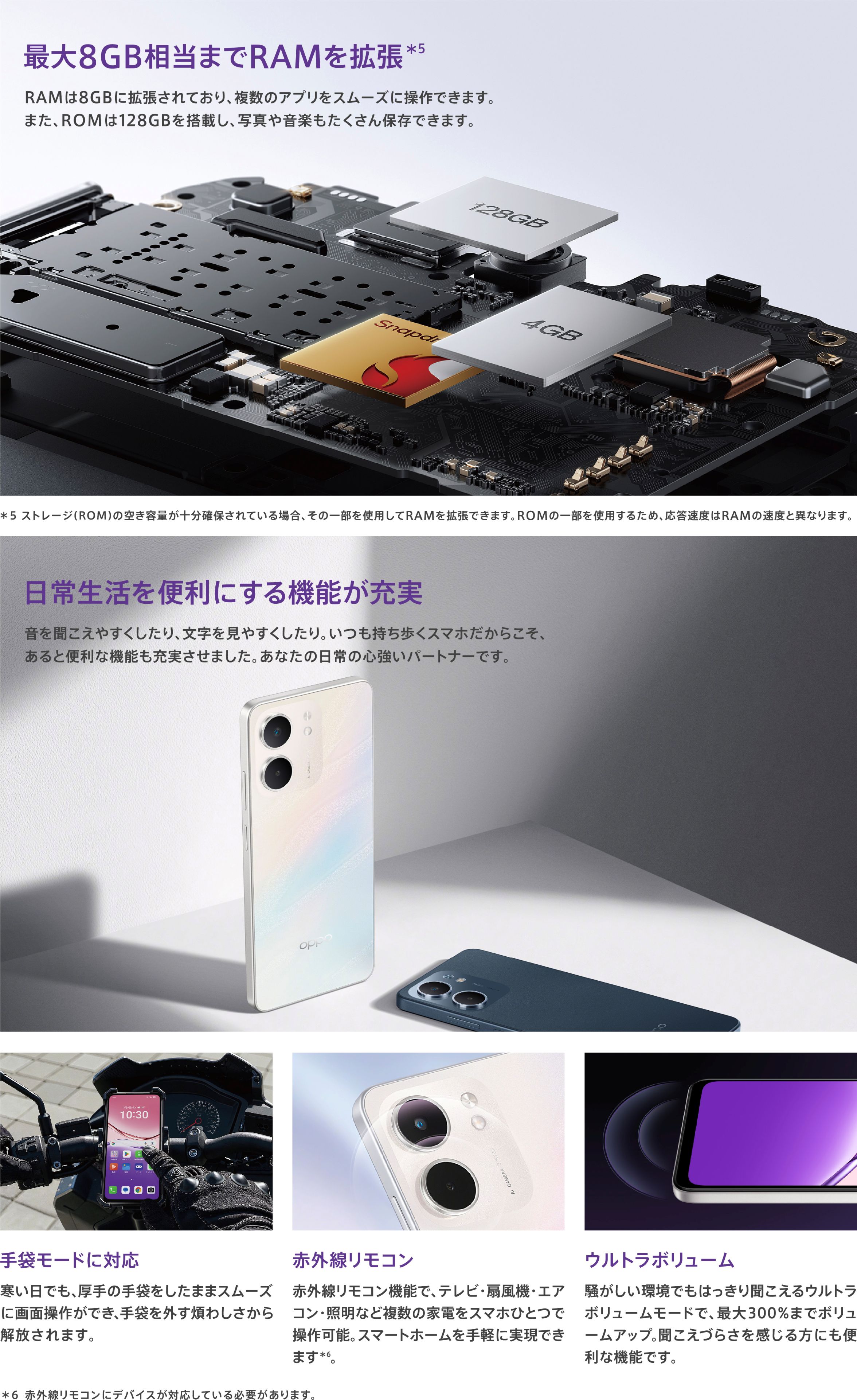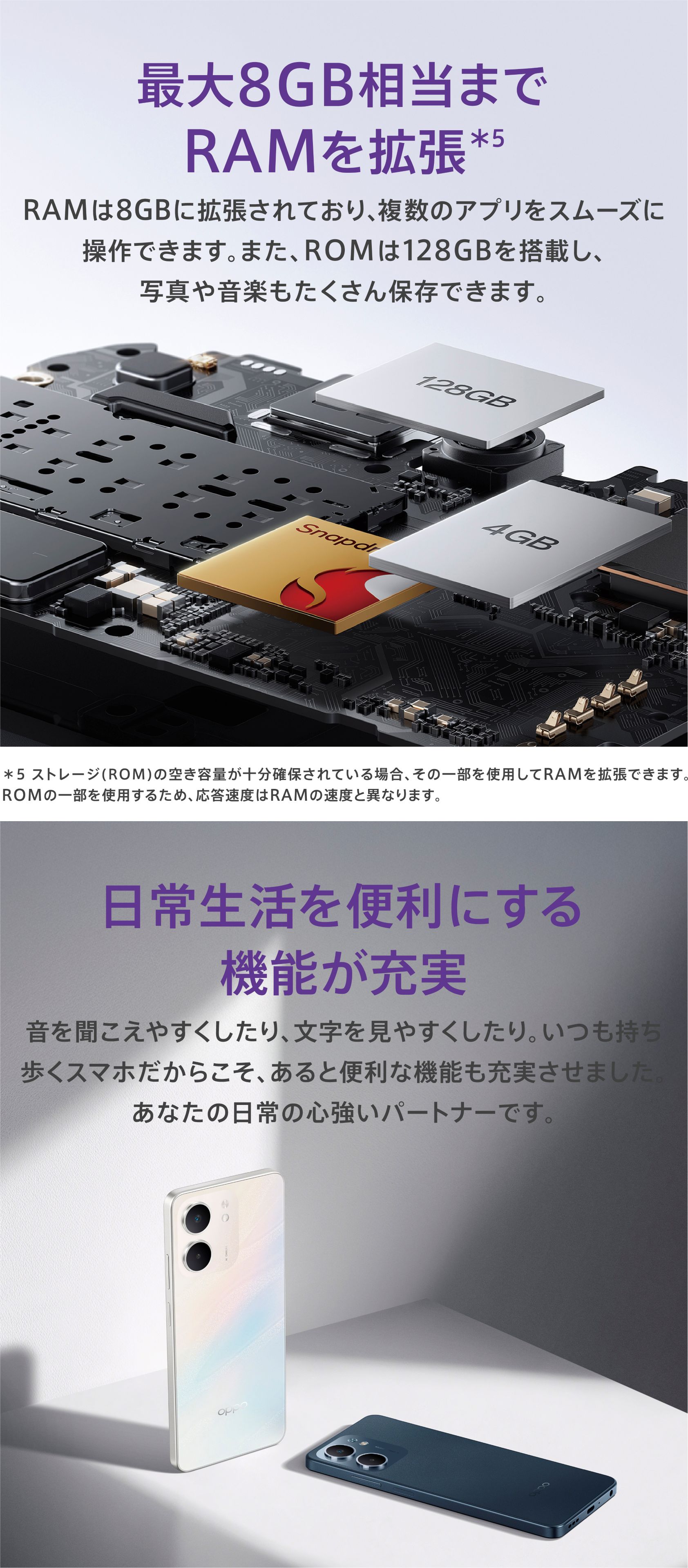 | 内蔵メモリ | 4GB(最大8GB相当まで拡張可能) / ROM 128GB |