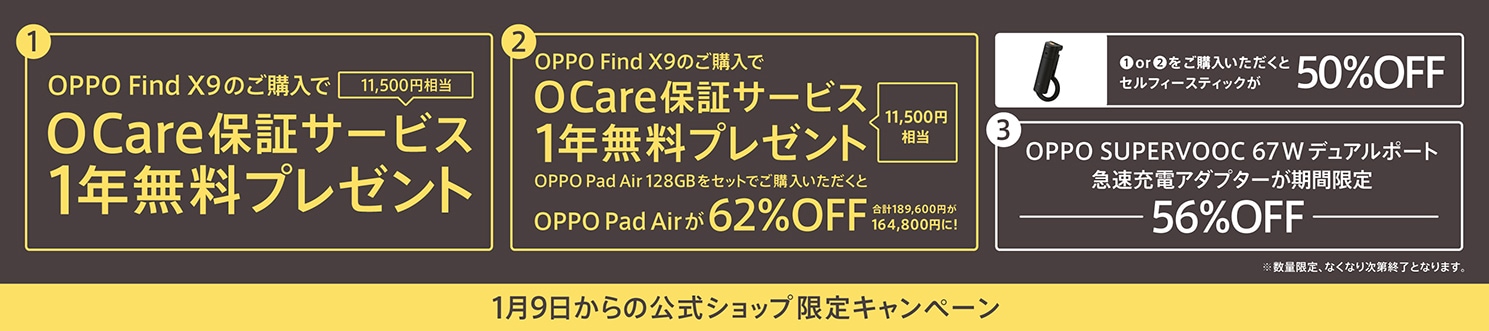 OPPO Find X9本体にキャンペーン限定セットをお選びいただけます。