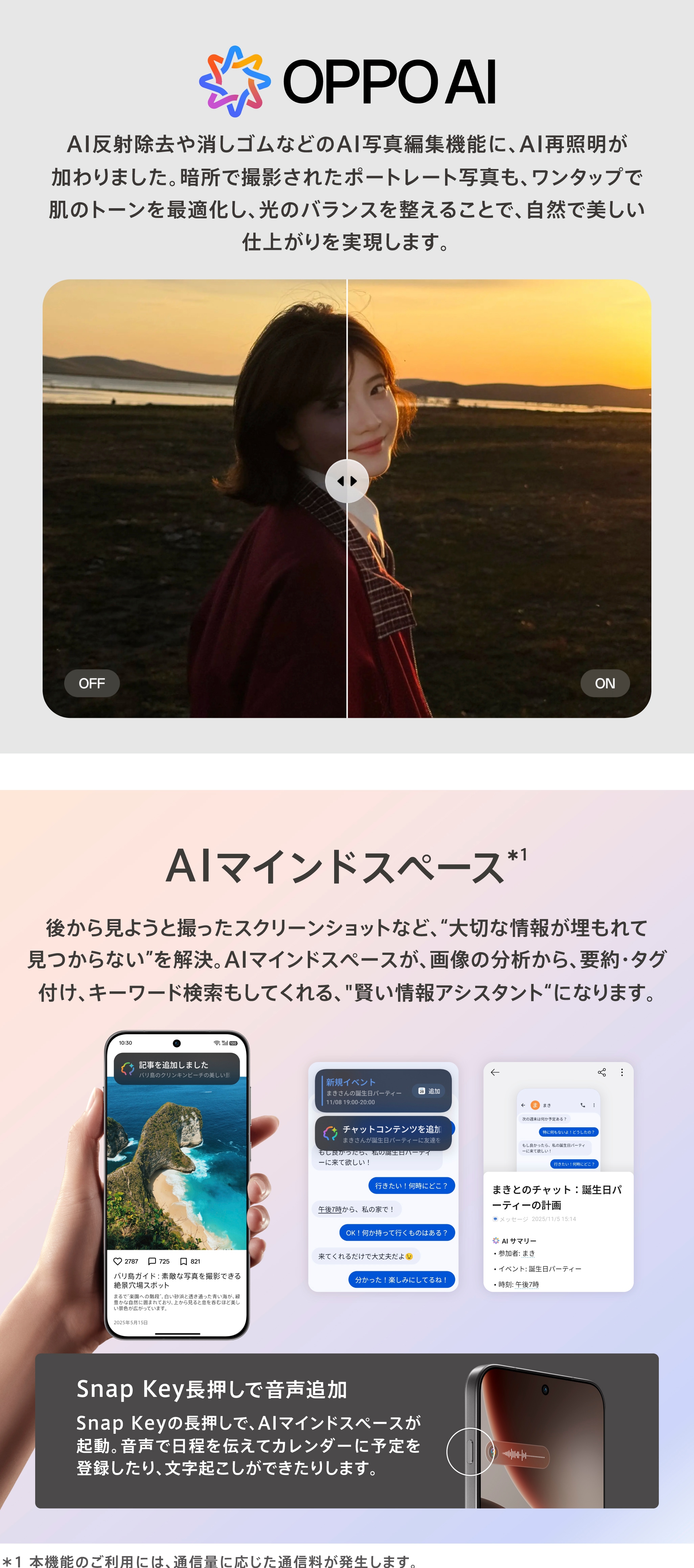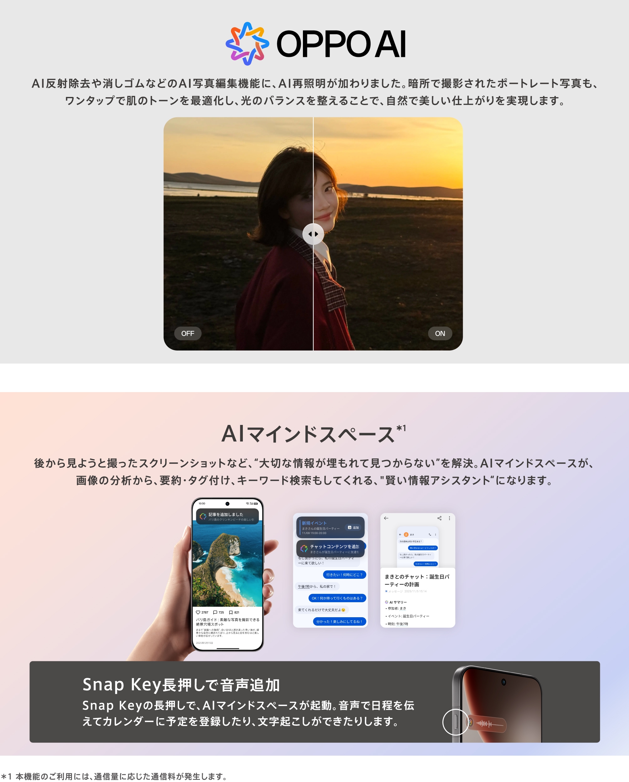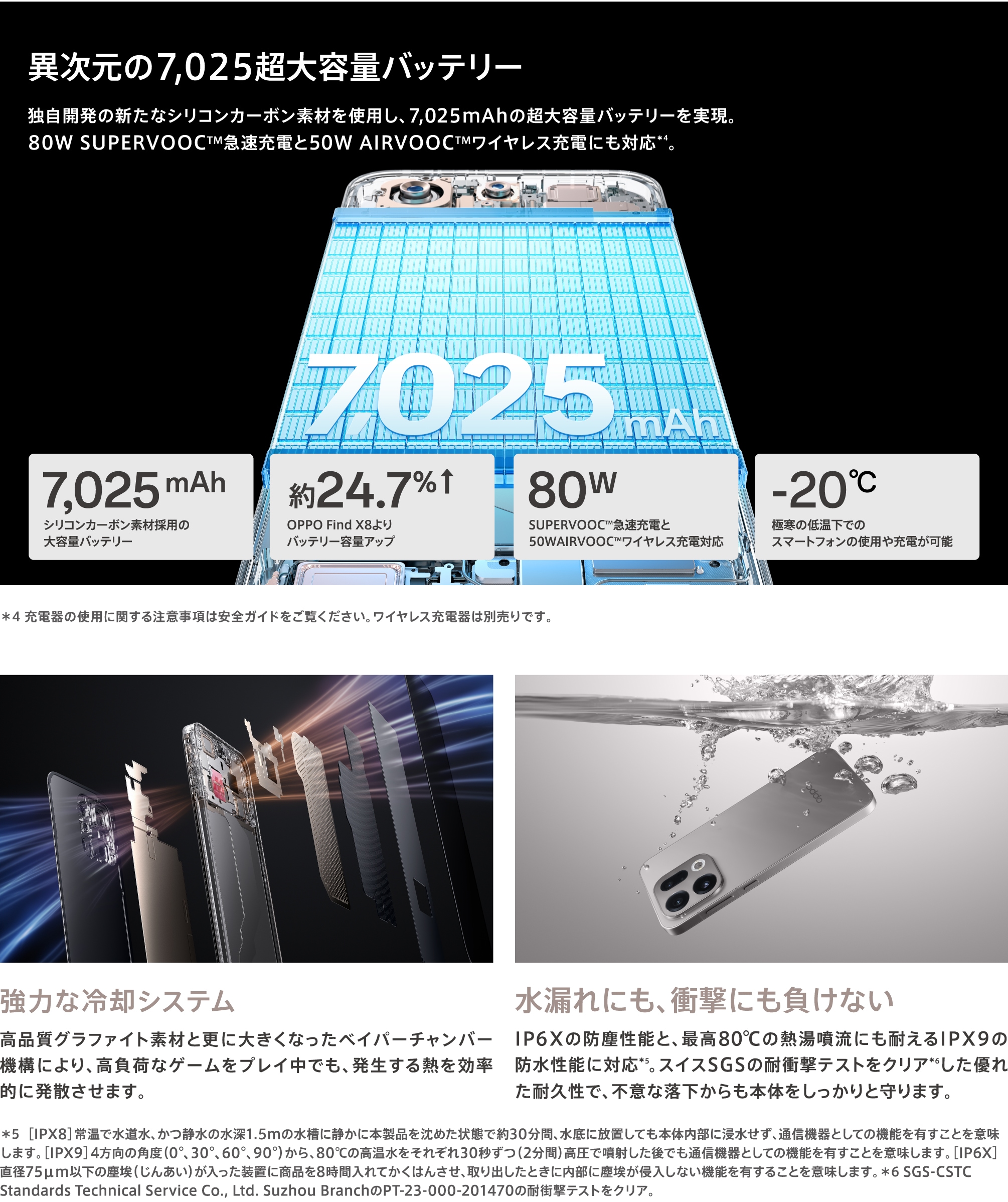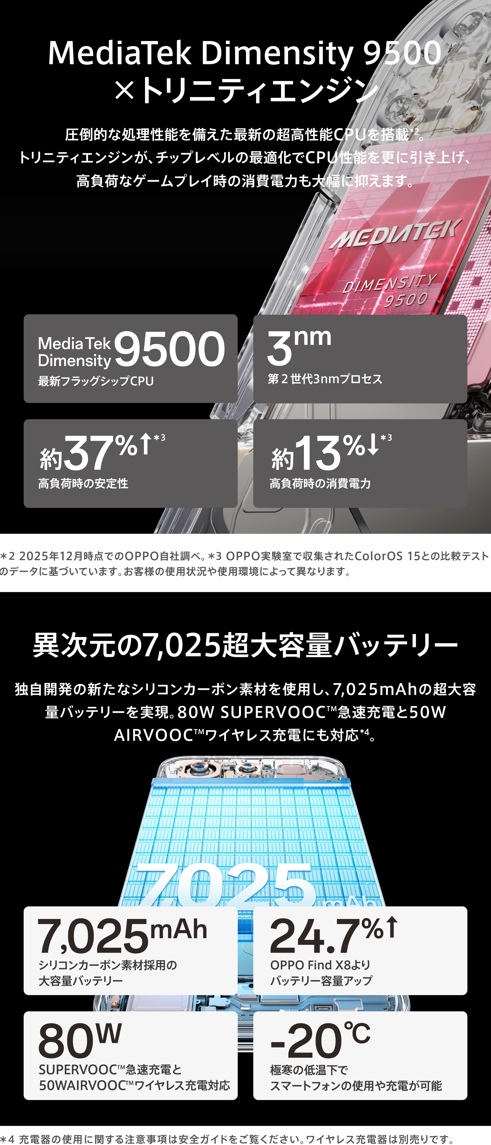 | 急速充電 | 80W SUPERVOOC™フラッシュチャージ / 50W AIRVOOC™ / 55W PPS |