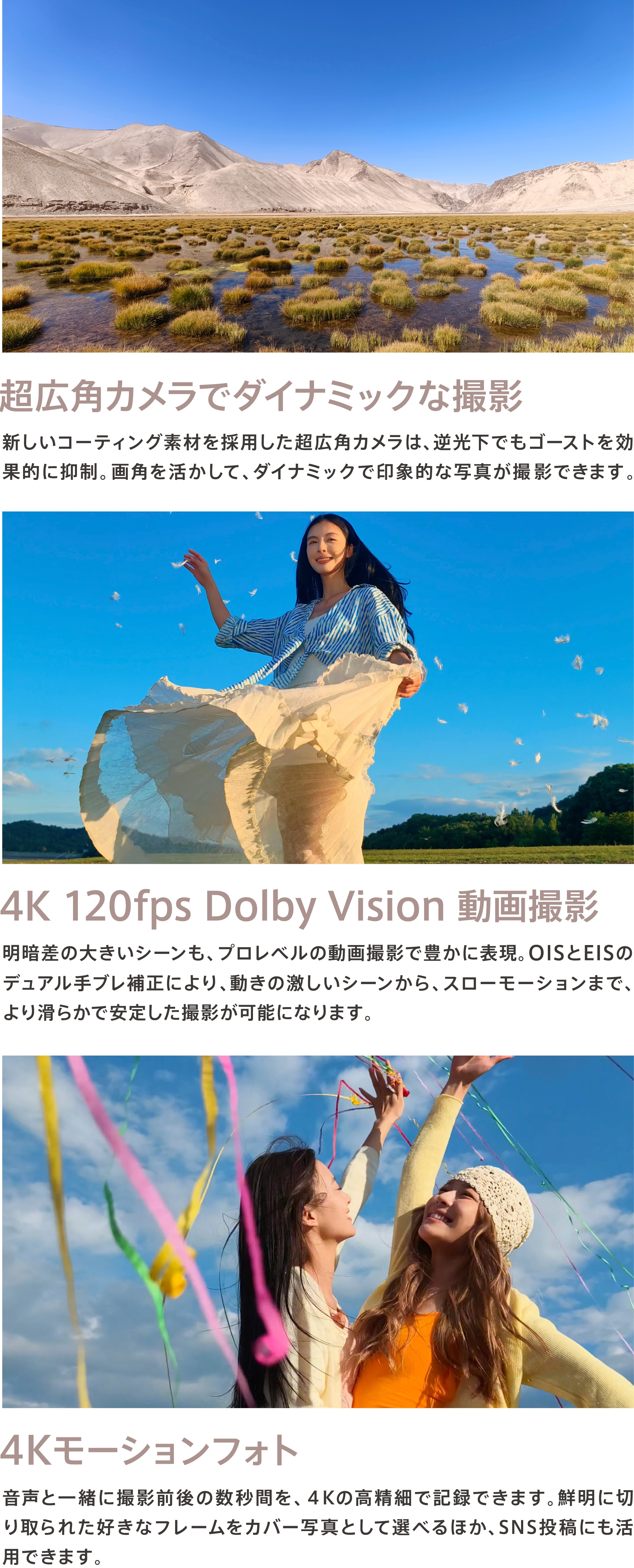| アウトカメラ | [望遠] 約5,000万画素 [広角] 約5,000万画素 [超広角] 約5,000万画素 [マルチスペクトル]約200万画素 |
